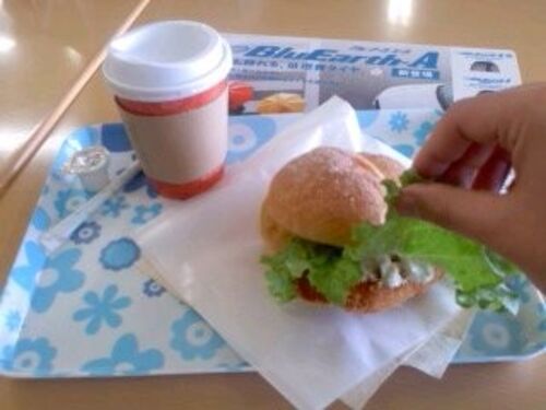 もう滋賀県まで戻ってきたということで、サービスエリアで昼御飯。テレビで見たブラックバスのバーガーがあったので食べました。380円。結構美味しいです。そして、臭みじゃあないですけど、身のホツれ具合とか、結構、川魚の雰囲気があります。それが苦手な…